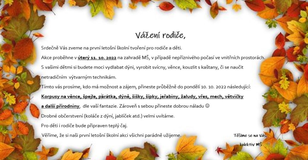 Podzimní workshop pro rodiče a děti