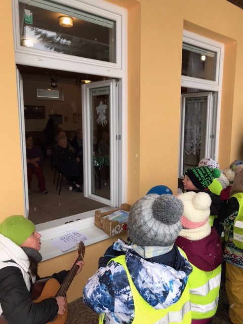 12. prosince jsme navštívili Domov pro seniory, abychom předali babičkám a dědečkům vánoční přáníčka, která vyráběli děti s rodiči. Při té příležitosti jsme zazpívali pár vánočních koled a popřáli si navzájem krásné Vánoce. Za odměnu jsme dostali potlesk, úsměvy a také i malou dobrůtku. Těšíme se na další společné setkání.
