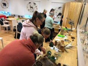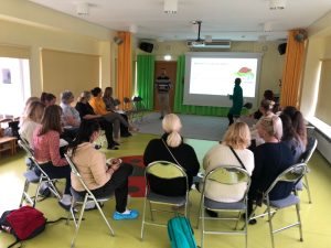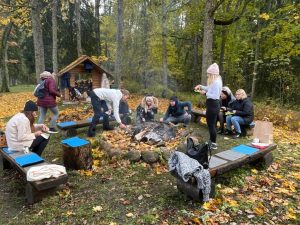 V úterý nás čekal výlet autobusem do vzdělávacího centra SAGADI, které je zaměřené na přírodní a environmentální vzdělávání dětí. Zde jsme měli ukázku výukového programu, prohlídku venkovního prostoru určeného pro aktivity s dětmi a prohlídku místního muzea. Pak nás čekal oběd v podobě opékání estonských buřtů venku na ohni. Následně jsme se autobusem přesunuli k Finskému zálivu. Na závěr pro nás byl v Rakvere připraven art workshop ve výtvarném ateliéru. Zde si každá paní učitelka vyrobila vlastní obraz pomocí techniky vrstvení barev.