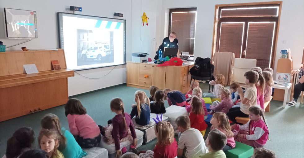 V tomto týdnu mají Tygříci téma povolání. Proto jsme požádali pana policistu, aby dětem povyprávěl o svém zaměstnání.