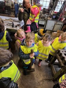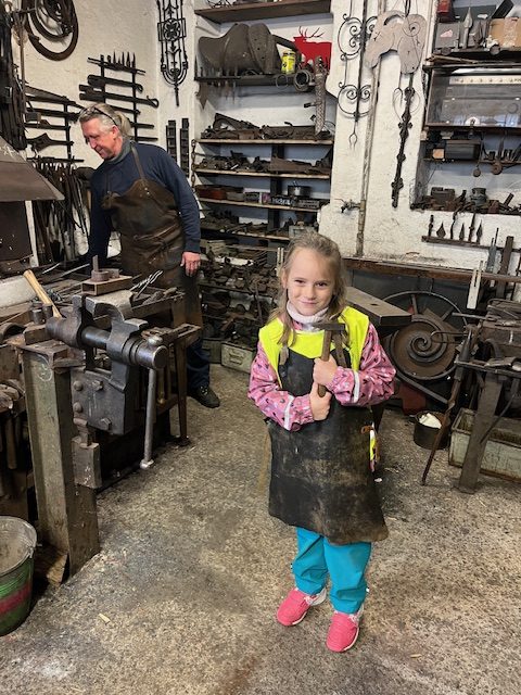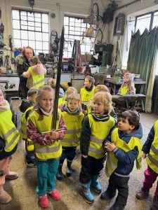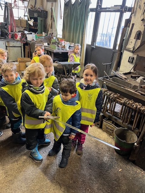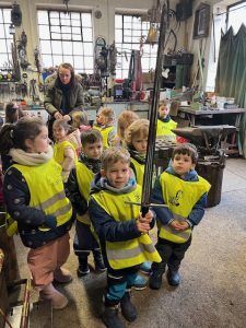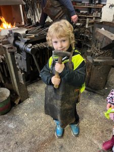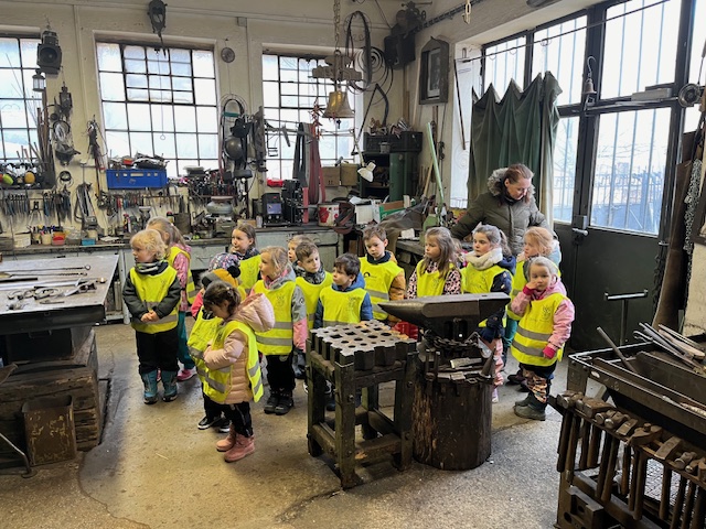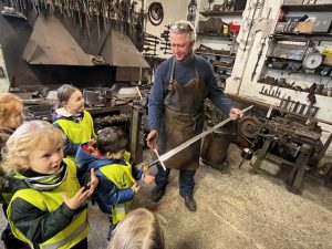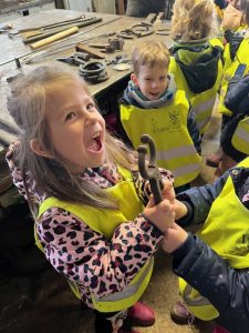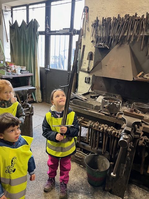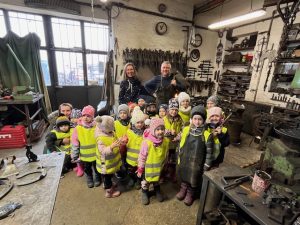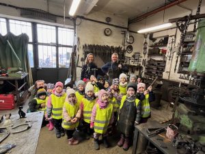 4.3.2024 jsme navštívili se třídou Žirafek kovárnu, která se nachází kousek pod jílovským náměstím. Kovář Jirka nám ukázal, jak to v takové kovárně vypadá a co se tam dělá. A tak jsme si prohlédli různě velká kladiva a kleště, také kovadlinu i výheň, předvedl nám, jak pracuje buchar. Moc jsme se všichni těšili, až nám ukáže, jak se kove. Děti byly překvapené, jak z rovného a tvrdého kusu železa po chvíli práce vzniknul krásný ozdobný hřebík, jak kov ve výhni „změkne“ a dá se pomocí kladiva nebo bucharu tvarovat. Kovář Jirka nám také ukázal další výrobky – třeba vykovanou růži, kočičku a želvu, mříž nebo meč. Děti si také potěžkaly kladivo, zjistily, jak moc je těžké a jakou musí mít kovář sílu, aby mohl pracovat. V závěru byl kovář Jirka překvapený, kolik dětí by chtělo dělat tuto práci. Uvidíme časem, jestli nám v Jílovém přibydou další kováři nebo i kovářky.
