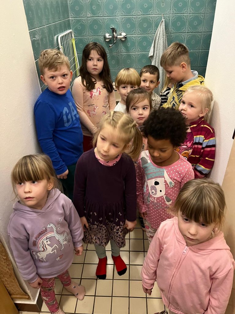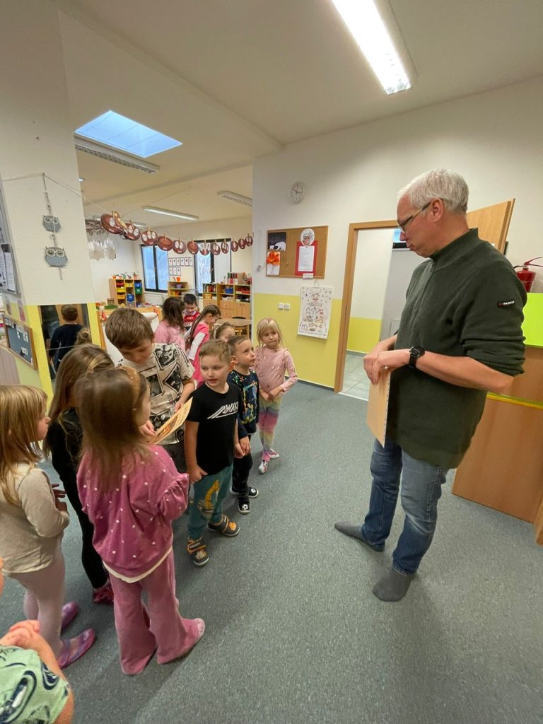 Akce se uskutečnila pod vedením pracovníka BOZP, který dětem vše hravou vysvětlil a děti s paní učitelkami se poté zkusily “schovat před nebezpečím”.