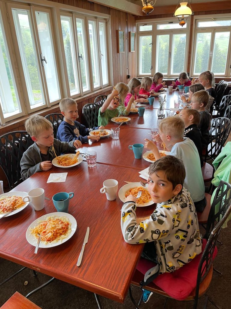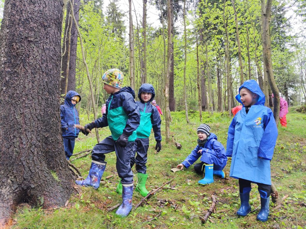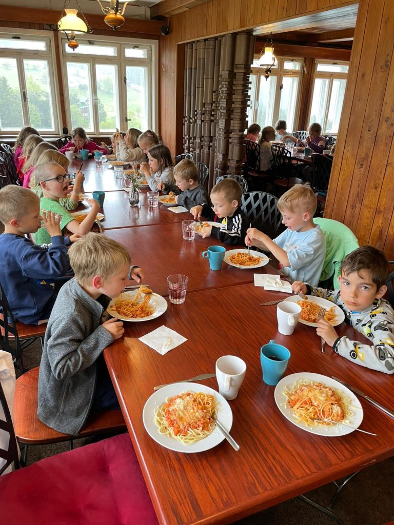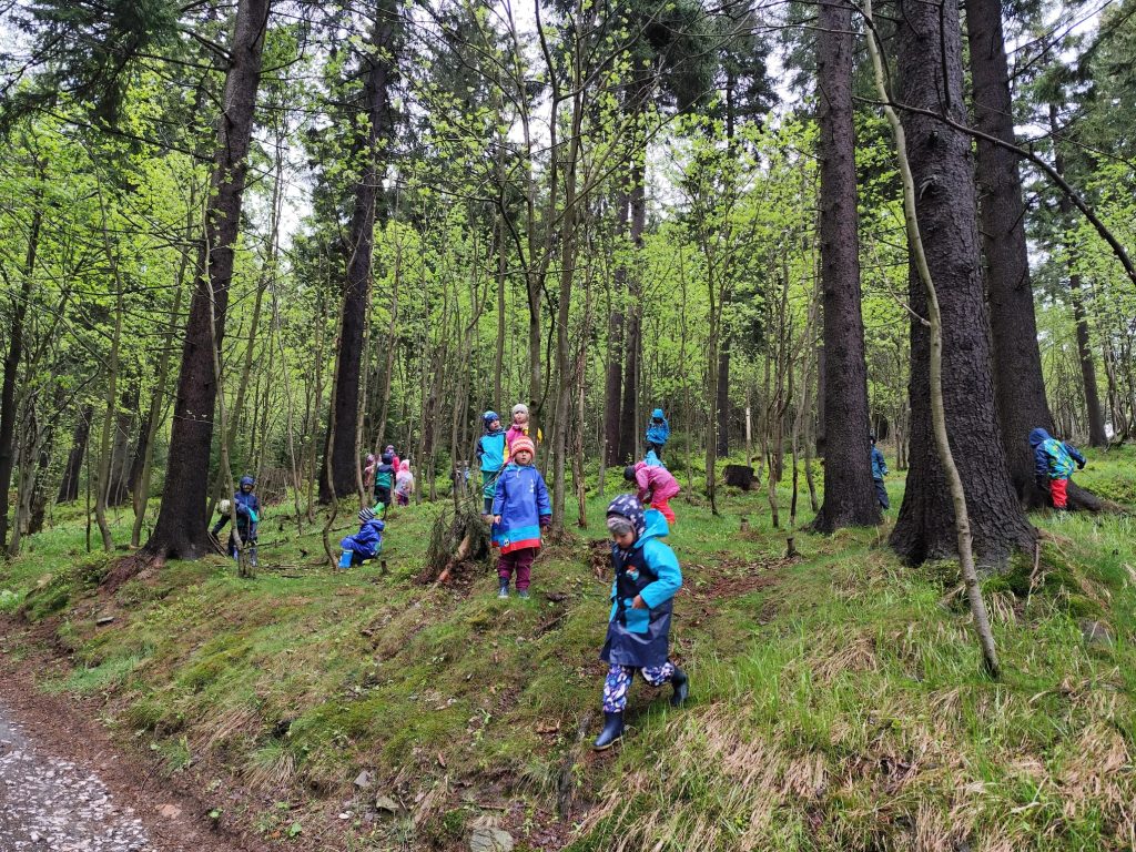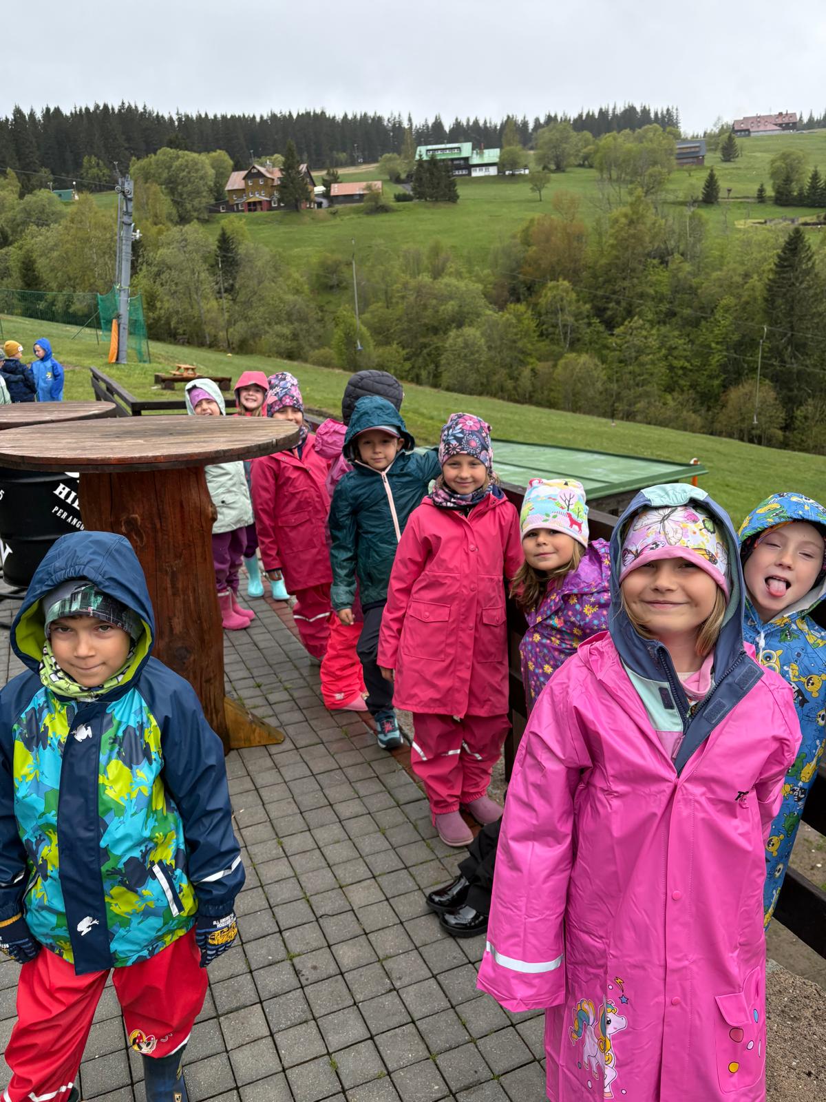 Posíláme první pozdrav z prvního dne na školce v přírodě. Naše velká tlupa dorazila dnes před polednem na chalupu. Po ubytování na pokoje a vybalení kufrů nás čekal skvělý oběd. Po obědě a odpočinku jsme využili chvíle bez deště a vyrazili jsme na krátkou procházku okolo chalupy, proběhnout se a protáhnout tělíčka. Navečer potom paní učitelka Gábina seznámila děti s tím, co nás čeká a že náš pobyt zde bude doslova pohádkový. Děti kreslili pohádkové erby a vybarvovaly pohádkovou cestu, kterou jsme si vyvěsili v jídelně. Po večeři a hygieně se z pokojů ozývaly pohádky a během chvilinky se ve všech postýlkách spinkalo.