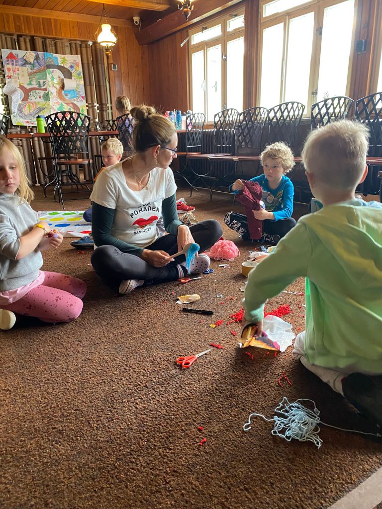 - Děti si přivezou vyrobená trička. Před praním je potřeba je zažehlit na co nejvyšší teplotu, nejlépe přes utěrku nebo staré plátýnko.