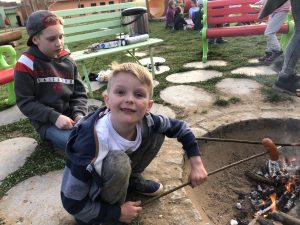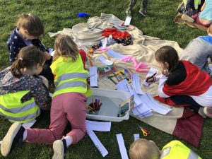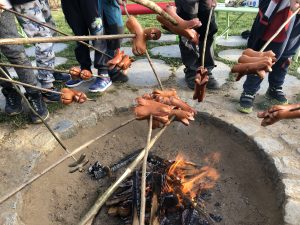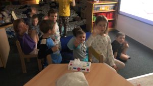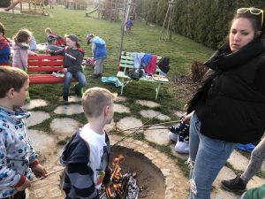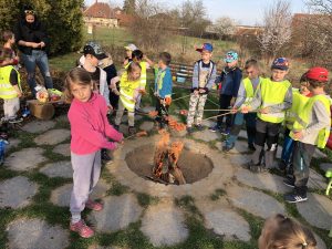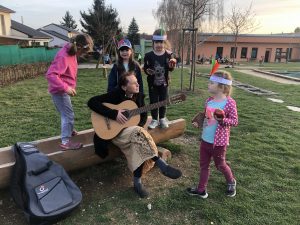 spaní dětí ve školce bylo moc hezké a všichni jsme si ho náležitě užili. Obzvláště nás bavilo opékání buřtů, indiánská hra, vyrábění indiánských čelenek a zpívání s paní učitelkou Gábinou, která nám zahrála i na kytaru. I sluníčko se na  nás smálo z oblohy až do večera.